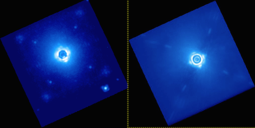 In our current anaylsis of the data, this technique seems to be sufficient for locating the central star: both spectral mode and polarimetry mode uncertainty is dominated by systematic errors. However, the radon technique takes into account the whole image and is sensitive to noise/bright objects. There are a few techniques to make this procedure stable. First, the primitive requires a guess for the occulted star position and a search radius around the inital guess position. This limits the search algorithm and for the most part gives very good precision. Occasionally, a pixel value floor needs to be set using the lower_threshold parameter to remove any extremely negative pixels which sometimes appear around the border of the image. Lastly, it is important to mask out any bright sources that are brighter than the satellite spots. The primitive already masks out the halo of the central star, but if there are any bright companions in the image, they should be manually masked out also.